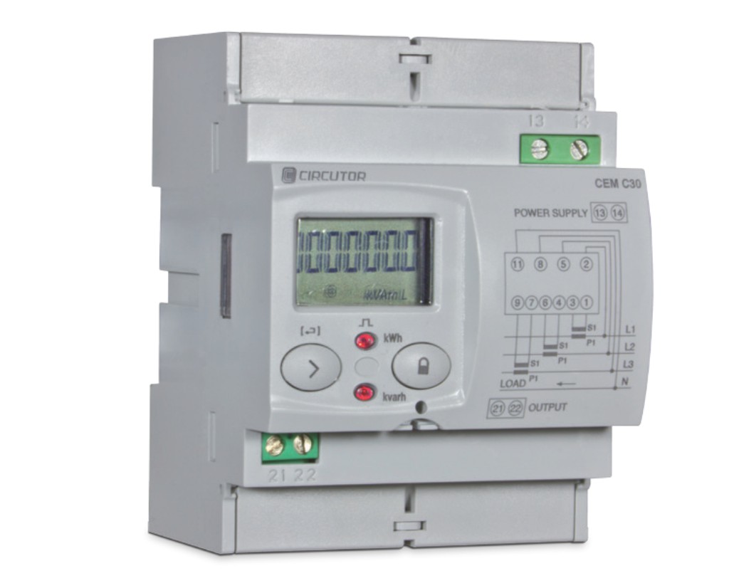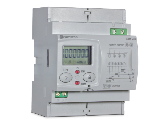 Contador trifásico de energía eléctrica con medida indirecta para montaje en carril DIN